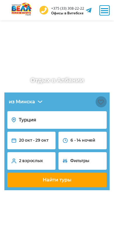 SEO-описание | Каталог туров и отелей в Албании по самым приятным ценам, которые можно купить в Витебске. Горящие туры на сайте или по телефону +375 29 787-22-22 |