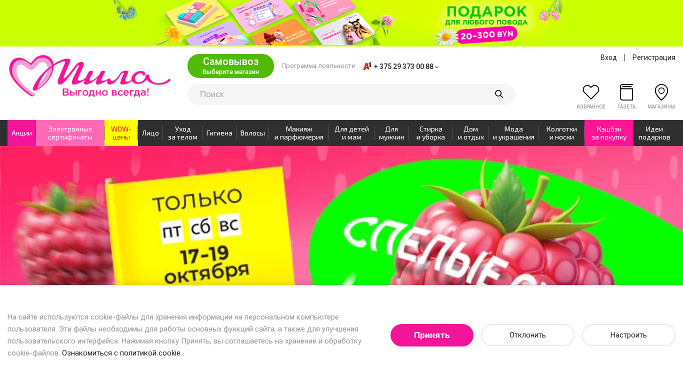 SEO-описание | Вас ждут акции, милая цена и товары по красной цене в каталоге интернет-магазина Мила бай ♥️ Загляните на наш сайт mila.by и узнайте про скидки на средства по уходу за домом, декоративной косметике и товаров для детей! |