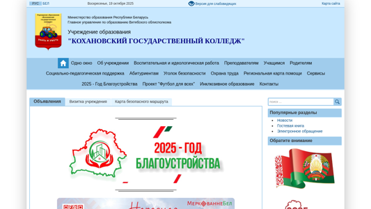 Email | kohanlitzey@tut.by, ptu173@mail.ru, info@kgk.edu.by |