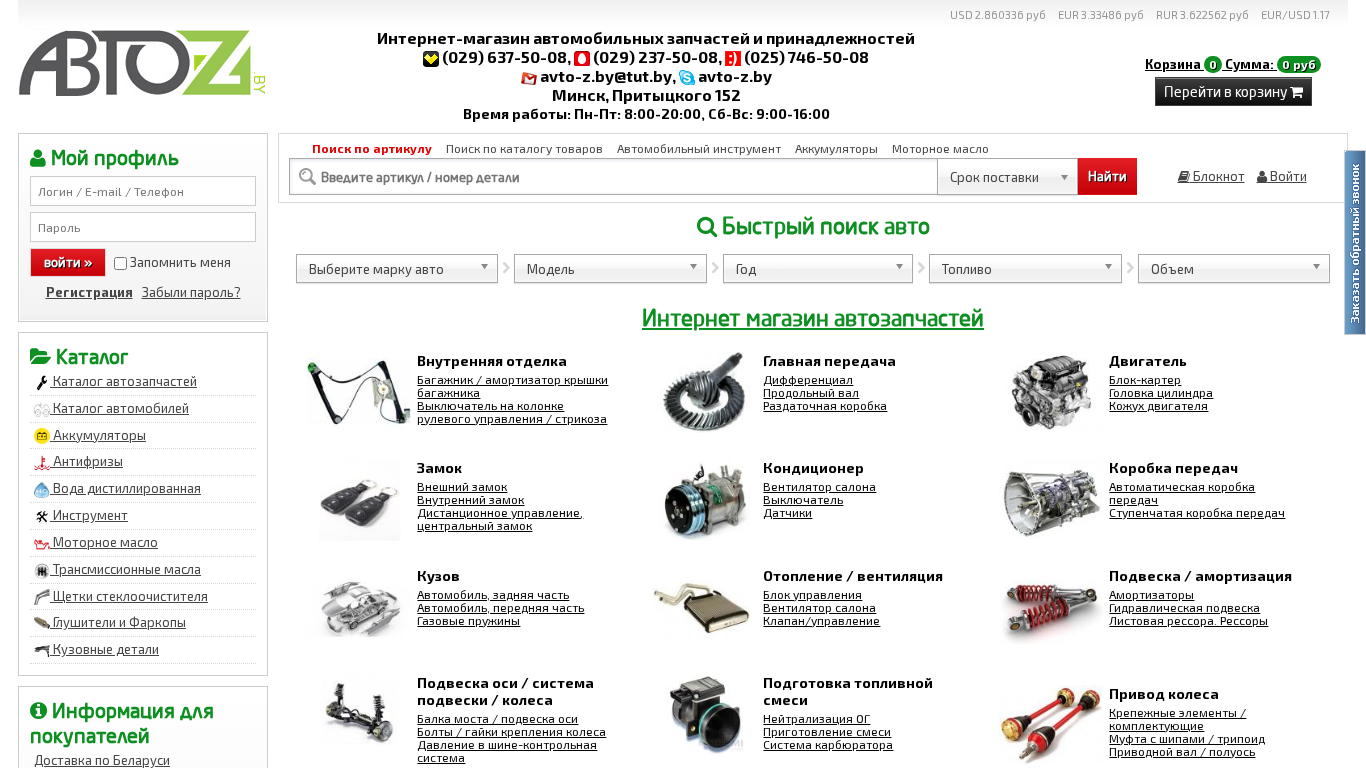 SEO-описание | avto-z.by – Автозапчасти, АКБ, моторные масла и многое другое для европейских, японских, корейских и американских автомобилей с доставкой по Минску. Онлайн каталог автозапчастей. |