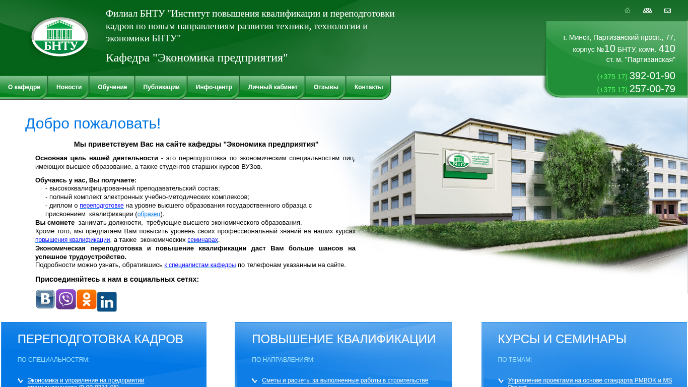 Название / Заголовок | Кафедра Экономики предприятия | Высшее экономическое образование, повышение квалификации, курсы и семинары в государственном ВУЗе «ИПК и ПК БНТУ» | Минск |
