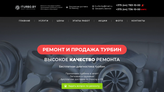 SEO-описание | Ремонт и продажа турбин. Принимаем турбины в зачёт! Легковые и грузовые! Бесплатная доставка по Минску +375 (44) 783-10-00 |