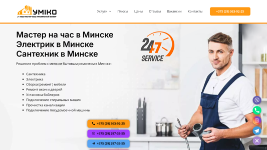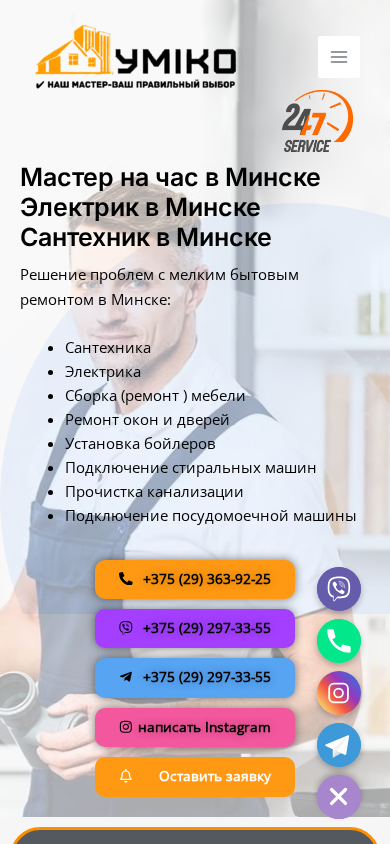 | SEO-описание | Электромонтажные, сантехнические работы, услуги плотника, умелец на час, муж на час, сборка и ремонт мебели, установка бытовой техники в Минске. |