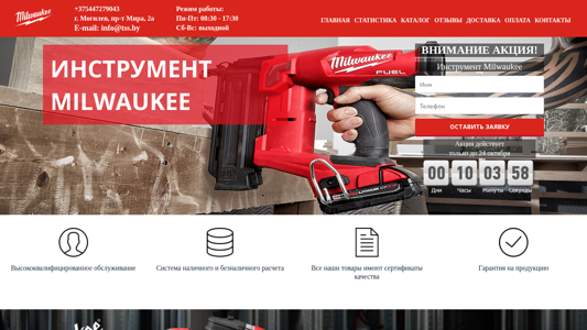 | Название / Заголовок | Инструмент Milwaukee в Минске, Могилеве, Витебске, Гомеле, Гродно, Бресте | ООО «Техстройсервис» |