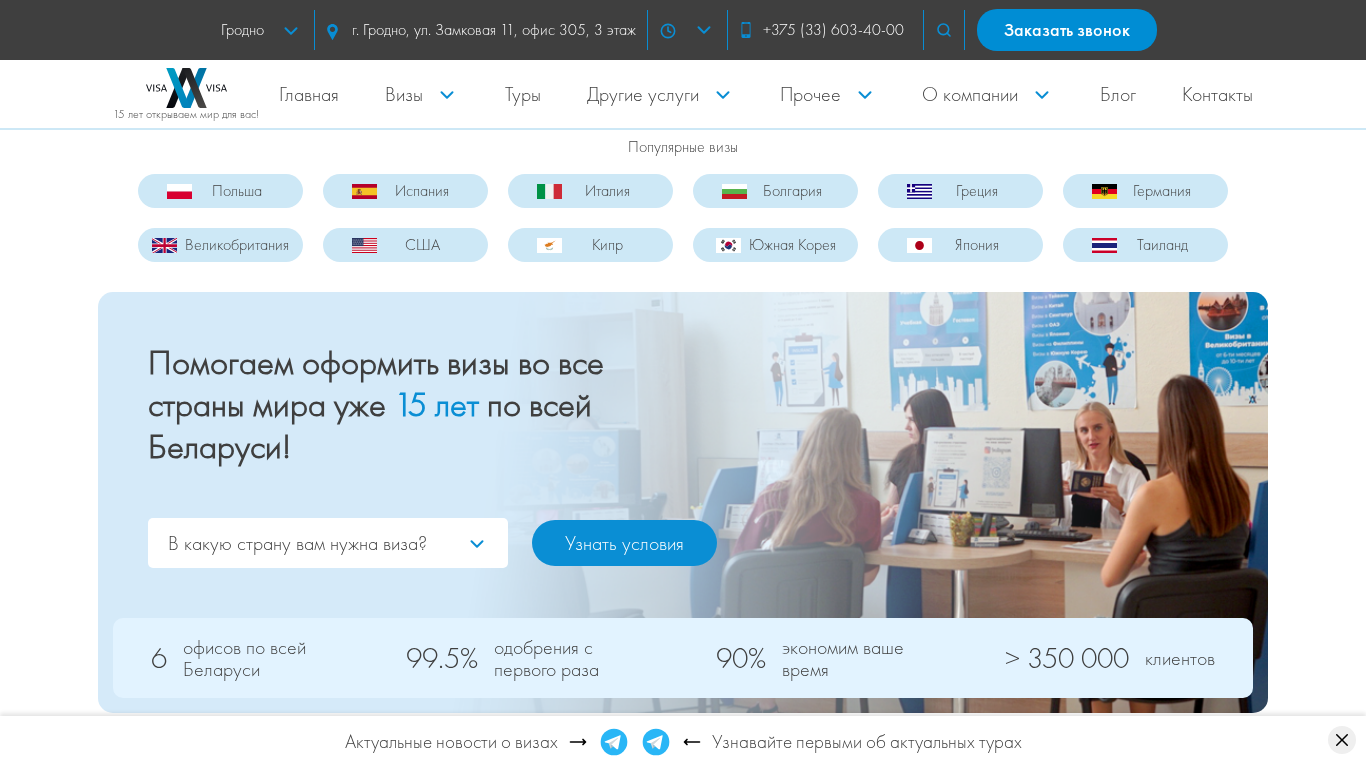 | Название / Заголовок | Сделать визу для белорусов в Гродно, цена - сколько стоит открыть визу в Беларуси, стоимость |