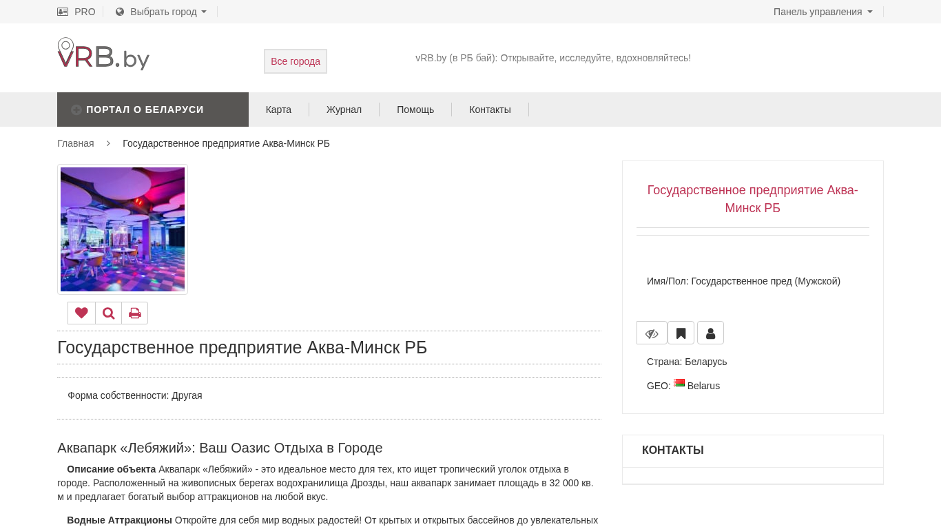 | Название / Заголовок | Государственное предприятие Аква-Минск РБ - vRB.by (в РБ бай): Портал о Беларуси |