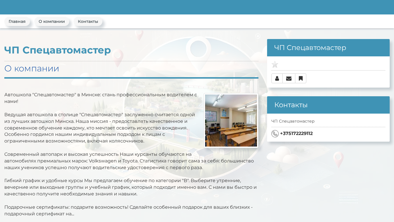 | SEO-описание | ЧП Спецавтомастер - г.Минск,ул.Толбухина,12,кв.50, +375172229112 |