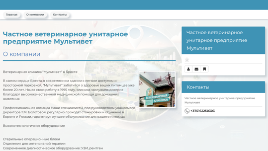 | Ключевые слова | Частное ветеринарное унитарное предприятие Мультивет |