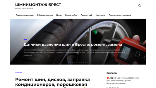 | Название / Заголовок | ШМНИМОНТАЖ БРЕСТ — ремонт, шин, дисков |