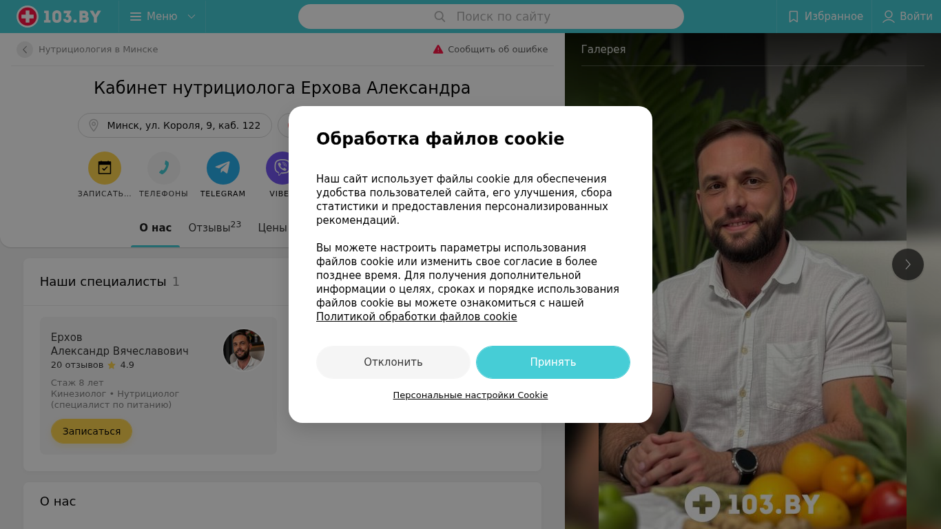 | SEO-описание | Кабинет нутрициолога Ерхова Александра Минск ул. Короля 9 – телефоны, время работы, отзывы и схема проезда в каталоге медицинского портала 103.by. |