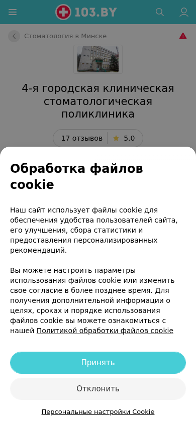 | SEO-описание | 4-я городская клиническая стоматологическая поликлиника Заводского района г. Минска – телефоны регистратуры, отзывы, адреса, время (график) работы, карта проезда на 103.by |