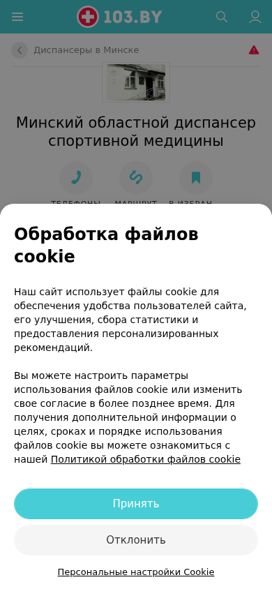 | SEO-описание | Минский областной диспансер спортивной медицины Минск ул. Я. Коласа 59/1 – телефоны, время работы, отзывы и схема проезда в каталоге медицинского портала 103.by. |