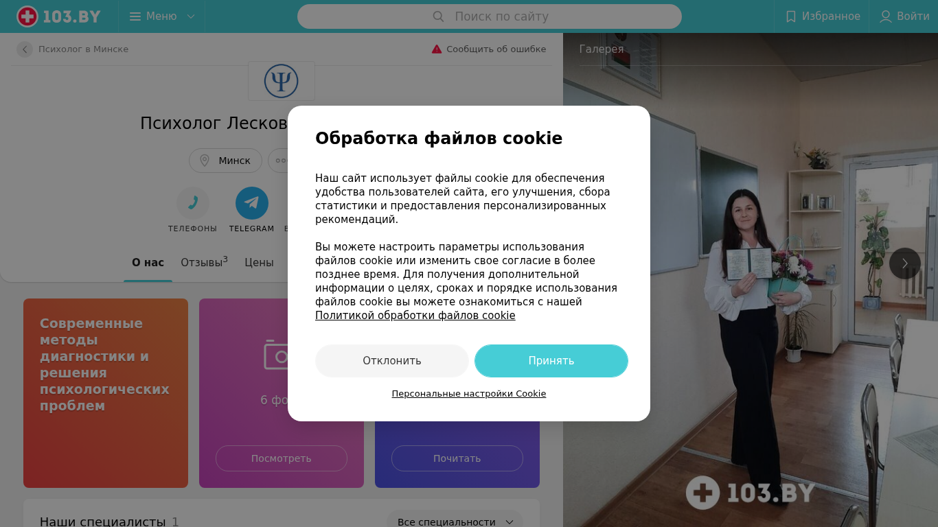 SEO-описание | Психолог Лесковская Анастасия Минск – телефоны, время работы, отзывы и схема проезда в каталоге медицинского портала 103.by. |