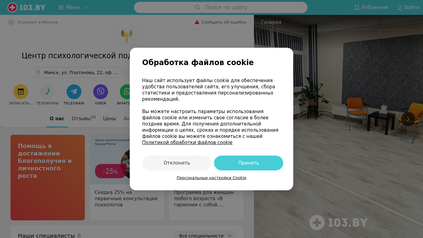 | SEO-описание | Центр психологической поддержки Крылья Мечты Минск ул. Платонова 22 – телефоны, время работы, отзывы и схема проезда в каталоге медицинского портала 103.by. |