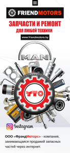 SEO-описаниеООО «ФрэндМоторс» - продажа запасных частей через интернет в Минске на любой вид транспорта как импортного, так и отечественного производства: грузовой, сельскохозяйственный, легковой, промышленное оборудование и даже водный и мото-транспорт.