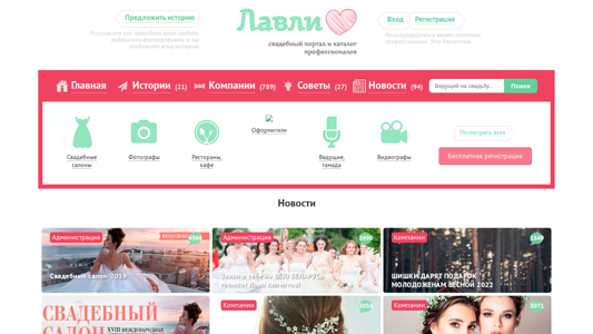 | SEO-описание | Портал для профессиональных организаторов свадеб, автомобилей, оформителей, визажистов и свадебных аксессуаров а также молодоженов. Ваша подготовка к свадьбе пройдет намного быстрее вместе с Лавли. | Лавли |