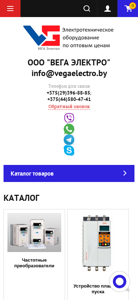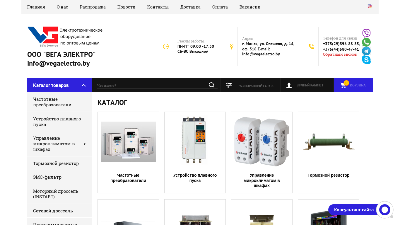 | SEO-описание | Официальный дистрибьютер частотных преобразователей INSTART и CANROON в Беларуси. Частотные преобразователи с гарантией 3 года. Доставка по Минску и Беларуси. Электротехническая продукция от мировых брендов по оптовым ценам. Грамотная консультация. Гарантия качества. Нужна электрика? Звоните либо пишите на e-mail info@vegaelectro.by |