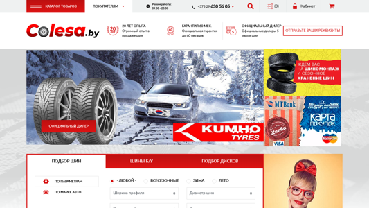 | Название / Заголовок | Интернет-магазин шин в Минске, купить автомобильные шины по выгодной цене – www.colesa.by |