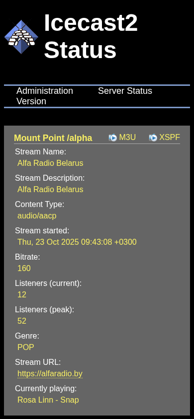 | SEO-лексика | stream radio listeners icecast server status mount point m3u xspf name alfa belarus description content type audio started thu oct |