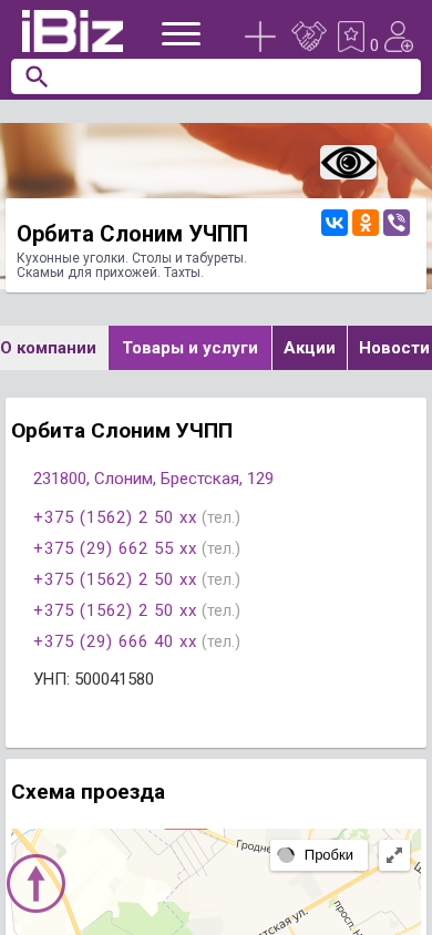 | AI-анализ | The website 'Orbita Sloним УЧПП' offers various types of furniture for kitchen corners, tables and taborets, chairs for entryways, and thrones. The company's address, contact telephone numbers, and a map for reaching the location are provided. The website includes sections for company information, products and services, news, announcements, vacancies, videos, and customer reviews on VKontakte and Odnoklassniki. The company operates from Monday to Friday, 9:00 AM to 6:00 PM, without lunch breaks on weekdays. The contact information includes multiple phone numbers and the company's Unified State Registration number (UНП). |