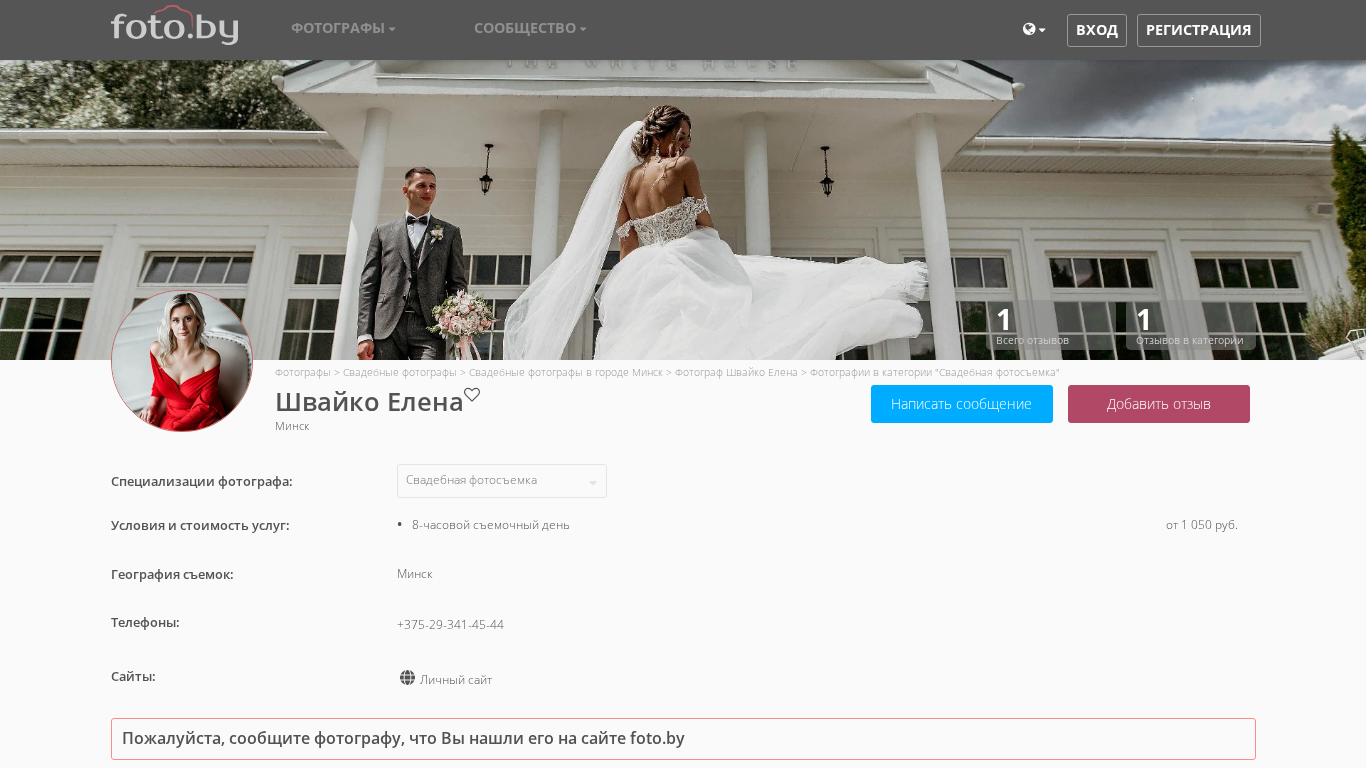 | SEO-описание | Фотографии в категории "Свадебная фотосъемка". Фотограф Швайко Елена - выполняю следующие виды фотосъемок: love story, свадебная фотосъемка. Работаю в городах: Минск |
