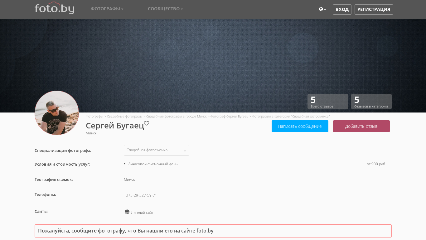 | SEO-описание | Фотографии в категории "Свадебная фотосъемка". Фотограф Сергей Бугаец - выполняю следующие виды фотосъемок: love story, свадебная фотосъемка. Работаю в городах: Минск, Могилев, Гродно |