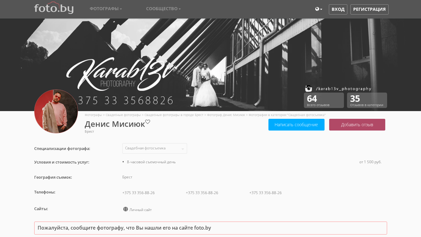 | SEO-описание | Фотографии в категории "Свадебная фотосъемка". Фотограф Денис Мисиюк Работаю во всех городах РБ, СНГ : нахожусь в г.Бресте |