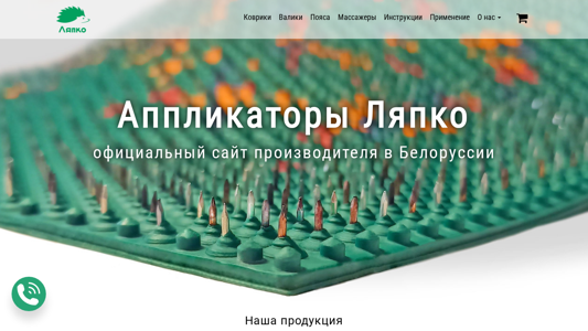 | AI-анализ | language: ru The website is an official e-commerce platform for the brand "Ляпко" (Lyapko), selling applicators, covers, belts, and massagers. The title of the website is "АППЛИКАТОР ЛЯПКО | Официальный саite: инструкции, лечение, купить" (Applicator Lyapko | Official site: instructions, treatment, buy). Keywords include "ляпко" (lyapko), "аппликатор" (applicator), and "купить" (buy). The website uses Google Tag Manager for tracking and analytics. Users can click on a button with the ID "cart" to open a pop-up window for viewing their cart and making a purchase. The website also features an "О нас" (About Us) section, |