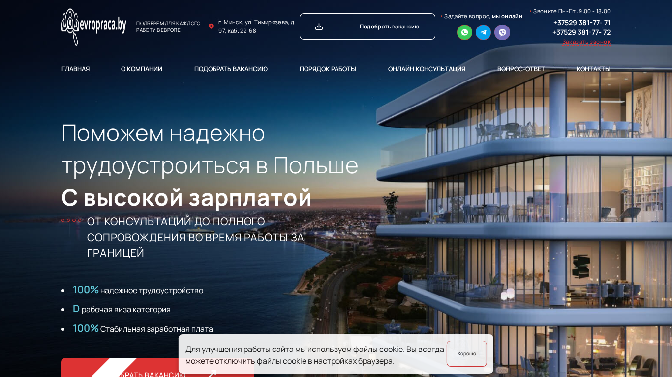 | Название / Заголовок | Работа в польше с знанием языка и без вахтовым методом |