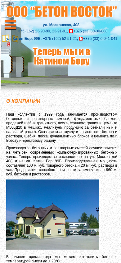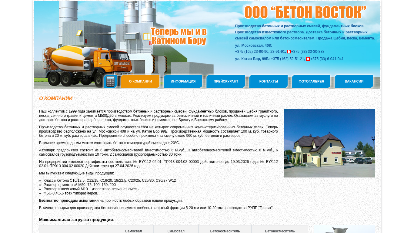 | Название / Заголовок | ООО «Бетон Восток» — Бетон в Бресте. Производство и доставка. |