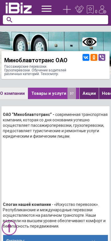 | Название / Заголовок | Миноблавтотранс ОАО - Пассажирские перевозки. Грузоперевозки. Обучение водителей различных категорий. Техосмотр.. 220037, Минск, , 1-й Твердый пер., 6 |