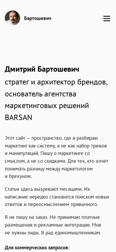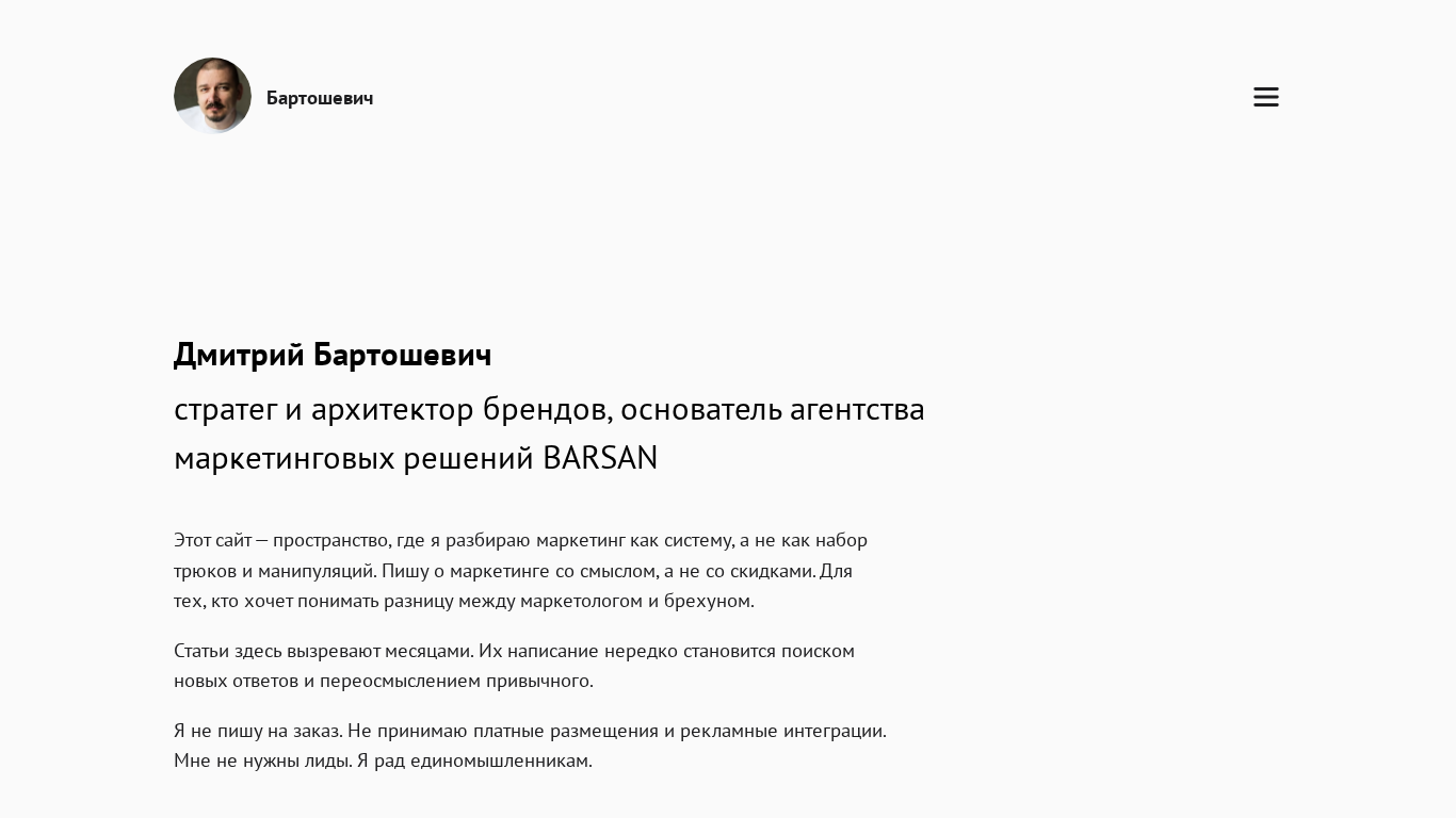 | SEO-лексика | контакты barsan маркетинге бартошевич проекты бренда дмитрий главная мне bartoshevich блог опыт навигация обо социальные сети основатель агентства вместо стратегия |