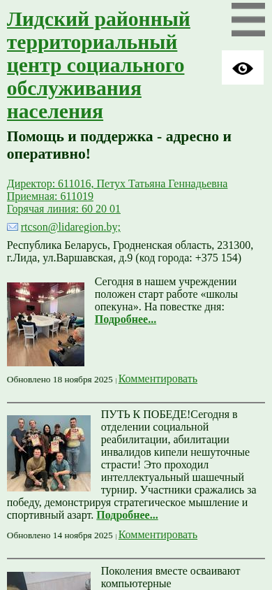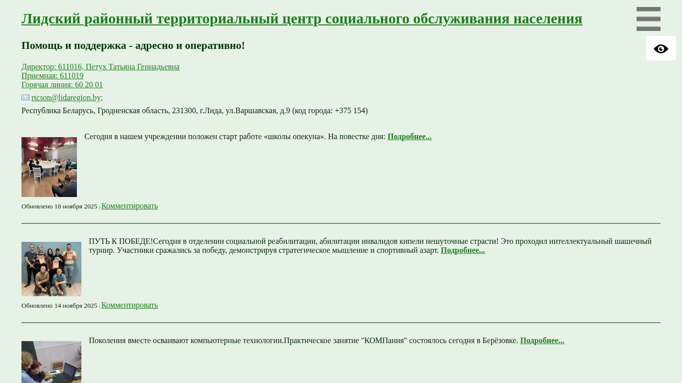 | Название / Заголовок | Лидский районный территориальный центр социального обслуживания населения |