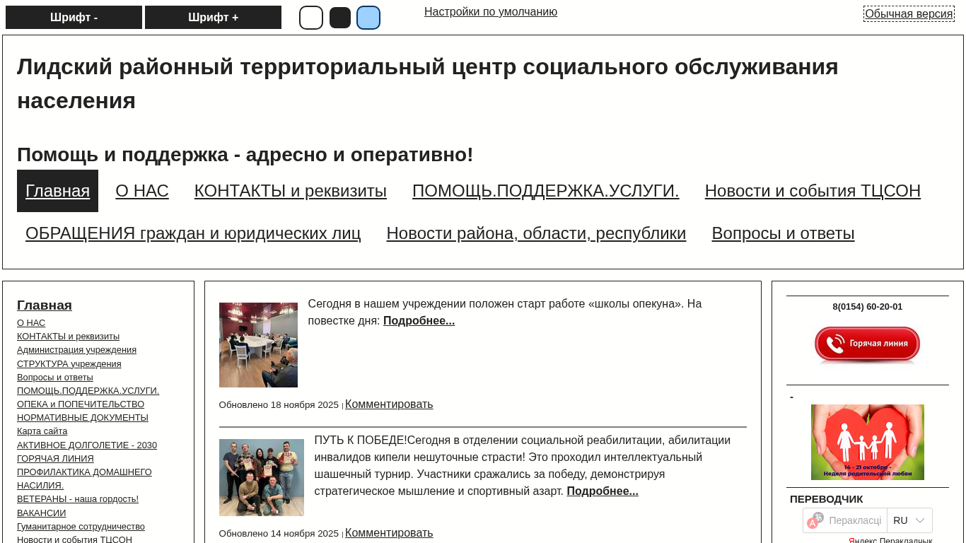 | Название / Заголовок | Лидский районный территориальный центр социального обслуживания населения |