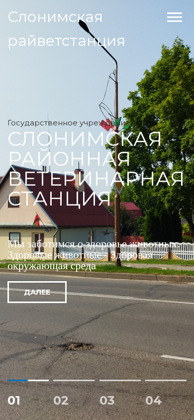 | AI-анализ | language: ru The web project СРВС (Slonim Veterinary Station) is a state institution responsible for managing veterinary affairs in Sloнимский район (district). The website provides information about the organization's mission, services, and contacts. The main objectives of СРВС include organizing veterinary services in the district, implementing therapeutic and preventive measures to maintain animal health and produce high-quality, safe animal products, preventing and eliminating disease outbreaks, protecting the territory from disease introduction, and enforcing veterinary legislation. The institution comprises several units: Sloнимская городская ветеринарная станция (Sloним City Veterinary Station), Слонимская районная ветеринарная лаборатория (Sloним District Veterinary Laboratory), Слонимская лаборатория ветеринарно-санитарной эксперти |