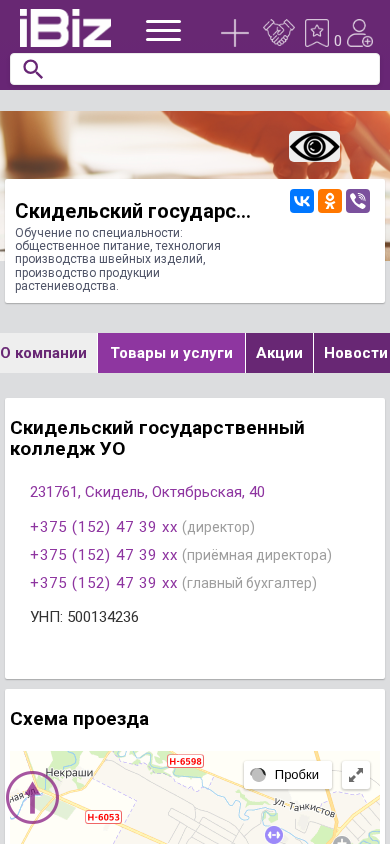 | Название / Заголовок | Скидельский государственный колледж УО - Обучение по специальности: общественное питание, технология производства швейных изделий, производство продукции растениеводства.. 231761, Скидель, , Октябрьская, 40 |