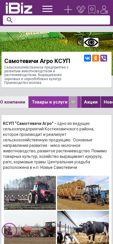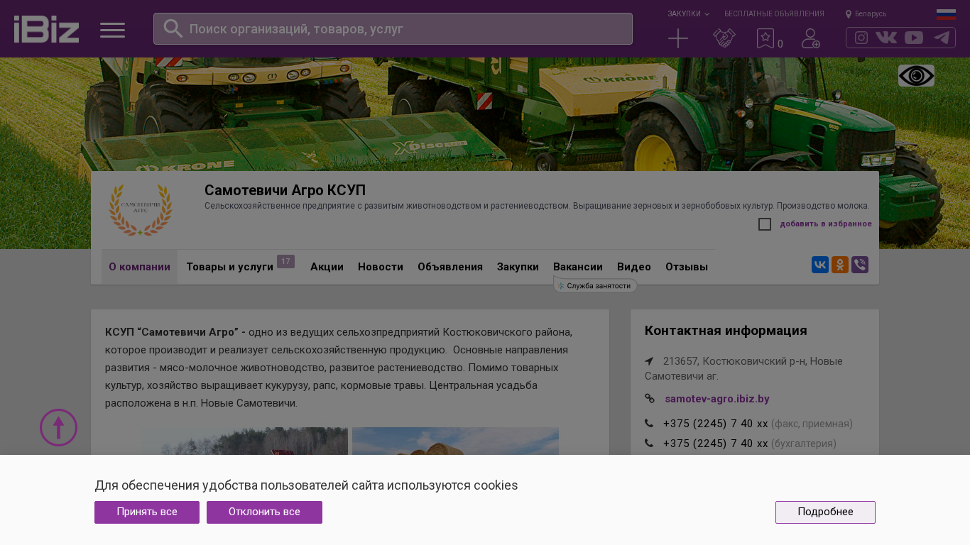 | Название / Заголовок | Самотевичи Агро КСУП - Сельскохозяйственное предприятие с развитым животноводством и растениеводством. Выращивание зерновых и зернобобовых культур. Производство молока.. 213657, , Новые Самотевичи аг. |