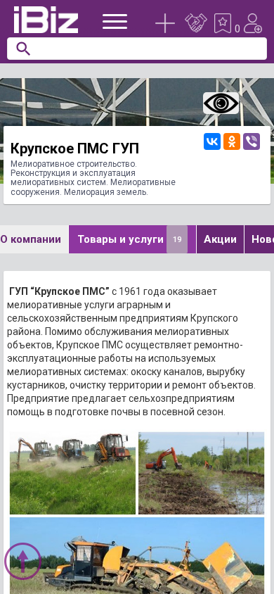 | Название / Заголовок | Крупское ПМС ГУП - Мелиоративное строительство. Реконструкция и эксплуатация мелиоративных систем. Мелиоративные сооружения. Мелиорация земель.. 222021, , Каменка д., Мелиоративная, 2 |