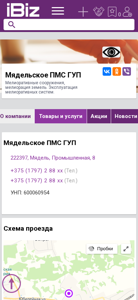| Название / Заголовок | Мядельское ПМС ГУП - Мелиоративные сооружения, мелиорация земель. Эксплуатация мелиоративных систем.. 222397, Мядель, , Промышленная, 8 |