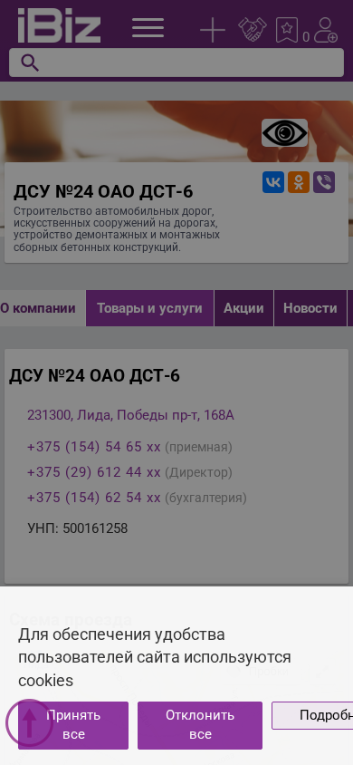 | Название / Заголовок | ДСУ №24 ОАО ДСТ-6 - Строительство автомобильных дорог, искусственных сооружений на дорогах, устройство демонтажных и монтажных сборных бетонных конструкций.. 231300, Лида, , Победы пр-т, 168А |