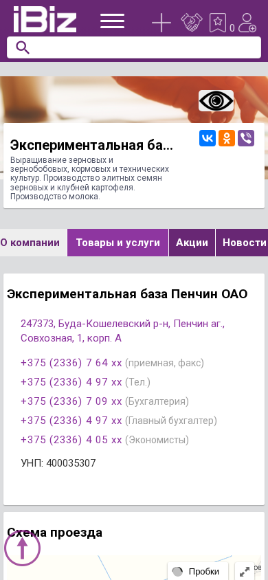 | Название / Заголовок | Экспериментальная база Пенчин ОАО - Выращивание зерновых и зернобобовых, кормовых и технических культур. Производство элитных семян зерновых и клубней картофеля. Производство молока.. 247373, , Пенчин аг., Совхозная, 1, корп. А |