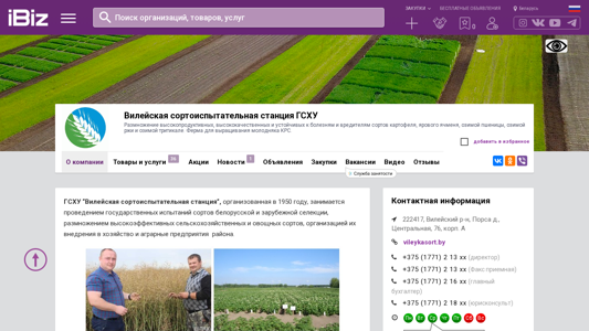 | AI-анализ | The portal is a sorting and multiplication station for high-productivity, high-quality, and disease-resistant varieties of potatoes, winter wheat, winter rye, winter barley, and winter triticale, as well as a cattle farm for raising young stock. It is located in the city of Vileyka, Minsk region, Belarus, at Central Street 76, Building A, Porsa district. The station offers free classified ads, news, company information, and services for agriculture. It was established in 1950 and conducts state testing of Belarusian and foreign seed varieties, develops recommendations for their usage, and provides transportation services to organizations and the public. The station's land area is 710 hectares, with 470 hectares used for farming. Annual seed trials are conducted on over 300 new varieties |