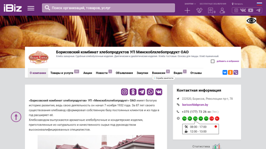 | Canonical URL | https://borisovhlebprom.ibiz.by |
