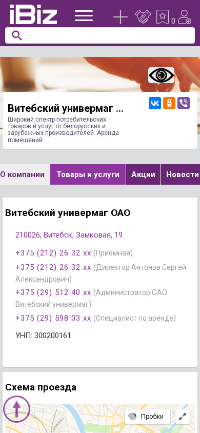 | SEO-описание | Витебский универмаг ОАО - Широкий спектр потребительских товаров и услуг от белорусских и зарубежных производителей. Аренда помещений.. Схема проезда, контактные телефоны, адрес компании Витебский универмаг ОАО. 210026, Витебск, , Замковая, 19 |