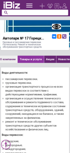 | AI-анализ | The website is for the Autopark No. 17, Goresky branch of OAO Mogilevoblavtotrans, which offers cargo and passenger transportation services, as well as vehicle inspection, repair, and maintenance. The homepage includes a scheme for reaching the location, contact phone numbers, and the address of the company. The site features sections for company information, goods and services, passenger transportation, transport services and logistics, news, announcements, vacancies, videos, and customer reviews. The company provides various types of transportation, including city, suburban, intercity, and international services, as well as customized transportation solutions. The website also offers information on the company's operations, such as hours of operation and contact information. |