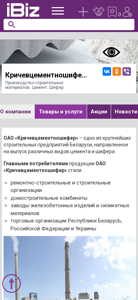 | AI-анализ | --- This online resource belongs to OAO "Кричевцементношифер", a leading Belarusian producer of cement and roofing tiles (shifer). The company's address is 213493, , Краснобудский с/с, 2, АБК in the vicinity of the quarry at Каменка. The website provides information about the company, its products, and services. Key offerings include construction materials, concrete products, and silicate materials. The company was established in 1933 and started producing cement in that year, while the first production of roofing tiles took place in February 1950. Consumers of cement and roofing tiles from OAO "Кричевцементношифер" include construction and repair organizations, domestic building combines, factories producing precast concrete products and sil |