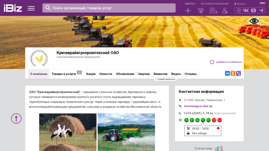 | AI-анализ | The website krichevagros.ibiz.by is for OAO "Кричеврайагропромтехснаб" - a farming production company located in Krichev, Belarus, with the address Тимирязева, 1. The company specializes in livestock farming, growing cereals, legumes, fodder, and technical crops. Major partners include large meat and dairy processing plants and agricultural enterprises in the Moгилевskaya oblast. The company produces and sells milk, beef, spare parts for agricultural machinery, grain, fertilizers, and provides transport services for physical and legal entities, including the transportation of agricultural produce and the sale of organic fertilizers. Skilled and experienced mechanics offer prompt and efficient repairs of agricultural machinery and provide replacement parts, as well as repairing refrigeration equipment. The website offers a rental |