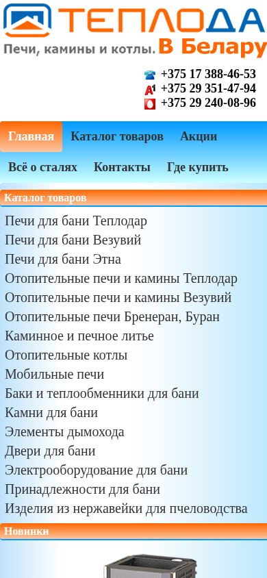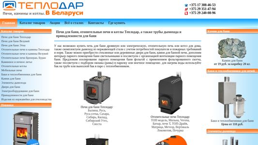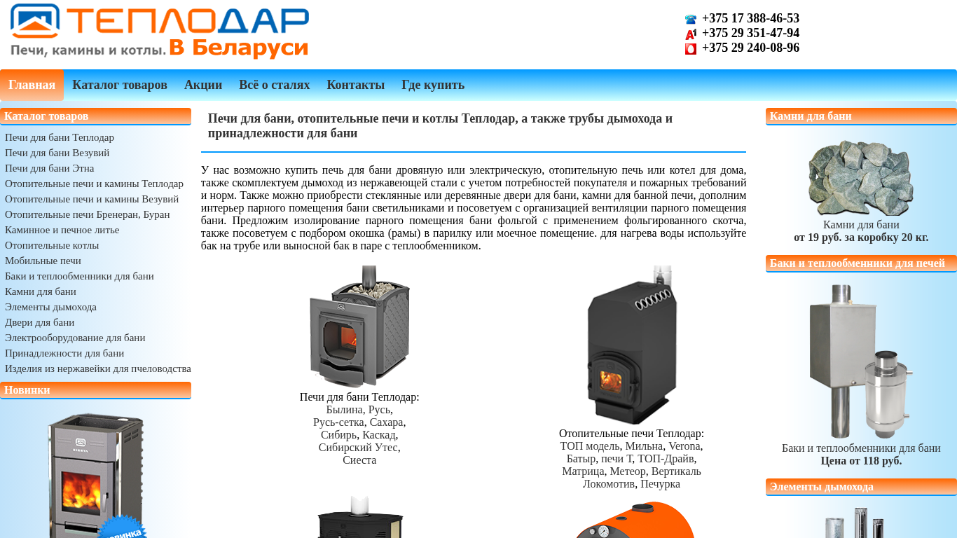 | Название / Заголовок | Печи для бани, отопительные печи, камины и котлы Теплодар в Минске. |