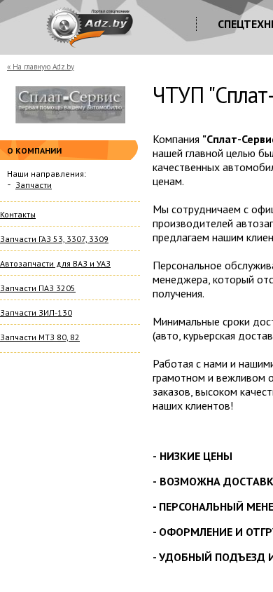 | SEO-лексика | запчасти 375 сплат-сервис адрес adz контакты 279-71-11 splatservice чтуп газ 3309 ваз уаз телефоны факс 254-70-10 354-70-80 минск время работы |
