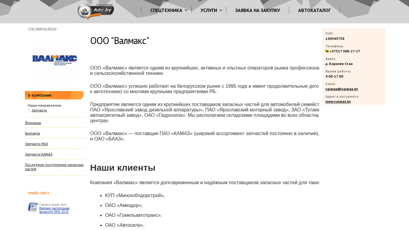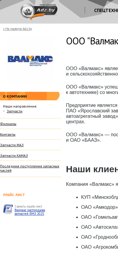 | SEO-лексика | valmax оао валмакс запчасти ооо запасных частей пао завод 375 adz контакты маз камаз прайс-лист адрес тел факс компании наши |